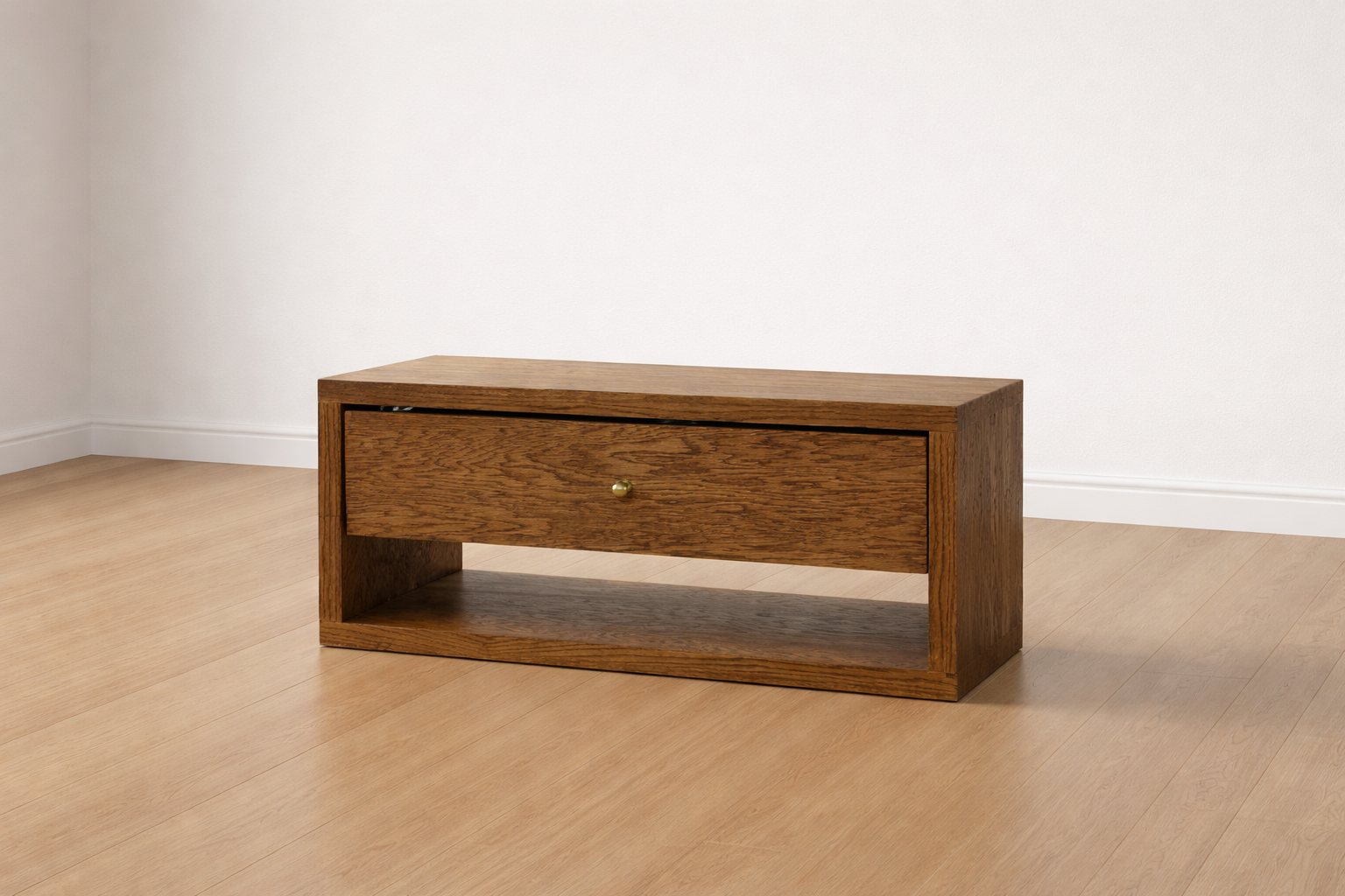 Our brand new handmade storage bench, made with natural oak. Measures 16.25" tall, 15" deep, and 33” length. This bench is hand crafted and comes 100% Pre-assembled. The bench has a drawer for extra storage as well!