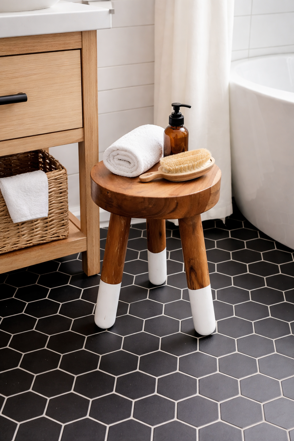 This stool is made of solid teak wood. Can be used as a shower stool or a plant stand. Holds to up to 100lbs.