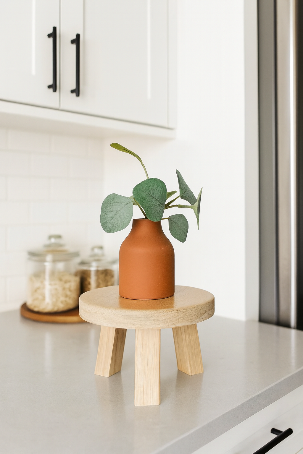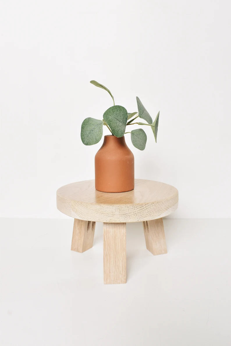 This piece is made of solid white oak and can be used as a plant stand, or small stool. Dimensions: Approximately 5" tall, and 8.5" diameter No assembly required.Once you place your order, it will be shipped in 1-2 weeks. Thank you for choosing ninasprojects