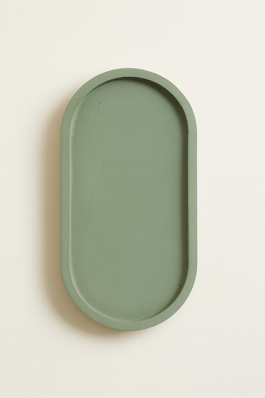 Handmade green concrete soap dish. This dish can be used for bar soap, pump soap, lotion, essential oils, jewelry, or plants.