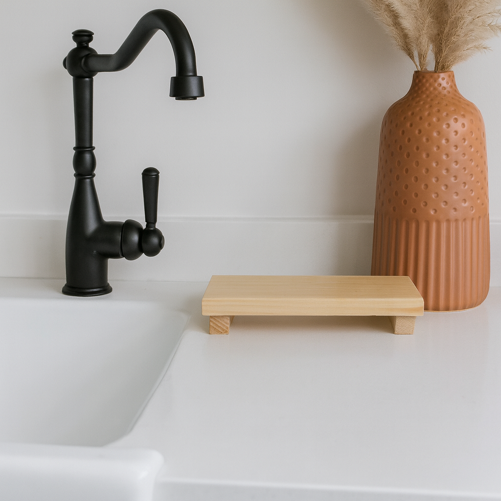 This wooden tray is the perfect addition to your bathroom or kitchen for your soap dispensers!